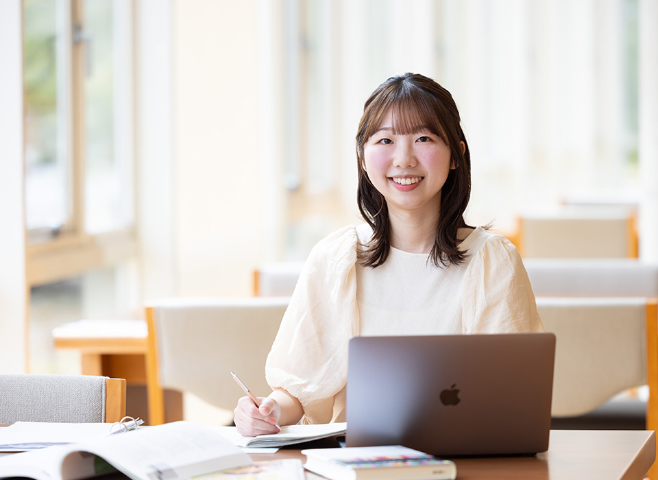 私は4人きょうだいの一番上ということもあり、小さい頃から子どもと関わる仕事がしたいと思っていました。幼児期は人生の基盤づくりとも言われているので、一緒になって基礎を身につけていくような関わりがしたいという思いもあります。そんな中、今はゼミで指導教員としてお世話になっている先生の講義で、子どもへの肯定的な関わりの重要性に触れる機会がありました。私が理想と考えていた保育のイメージに近かったので、気になって調べるうちに、もっと知りたくなって、「質の高い保育」を卒論の大きなテーマに。現在、子どもを否定せず、その感性に共感したり成長を楽しみながら支えたりする方法を探っています。