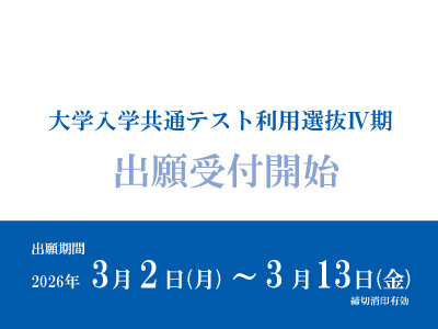 入試 大学入学共通テスト利用選抜Ⅳ期の出願受付を開始しました。2026.02.27